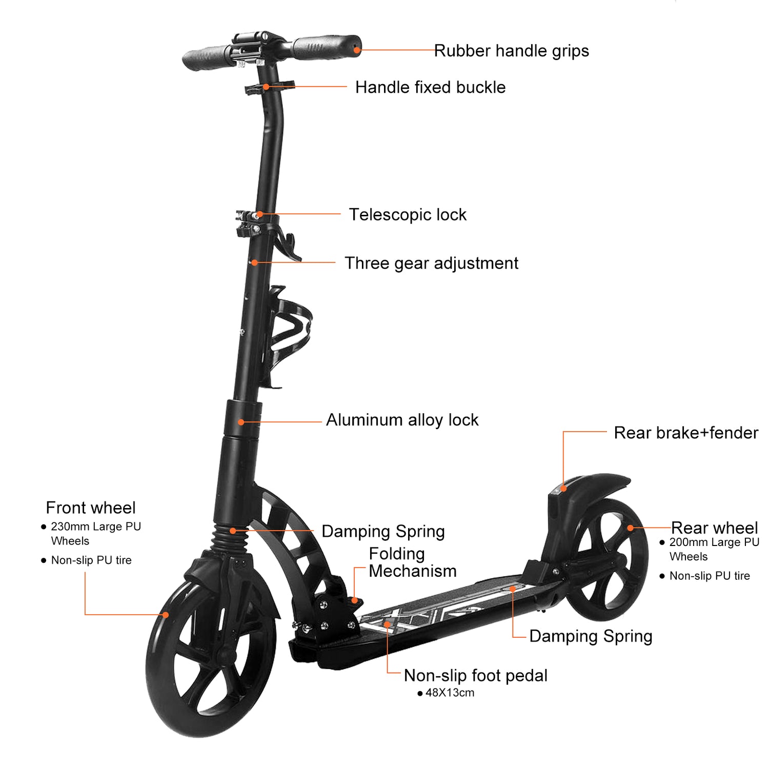 Kick Scooter with Large Wheel | Adjustable Foldable Lightweight Adult - A301